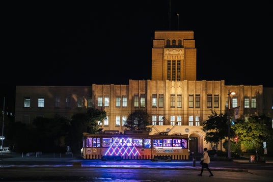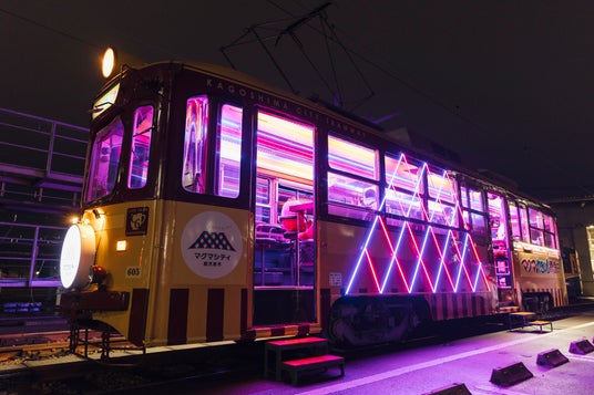 マグマシティのロゴをイメージしたLEDで光り輝く特別装飾の路面電車で、市内を回遊。