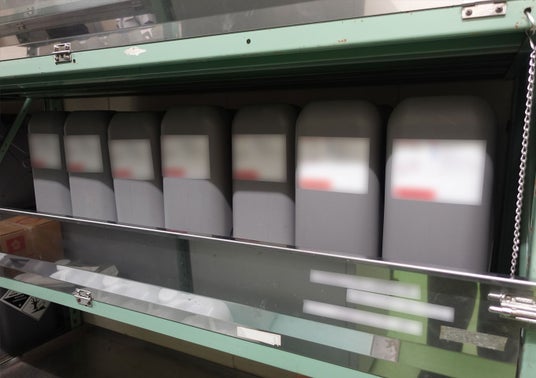 さらに、高所倉庫や遠隔倉庫、金庫などに保管されている薬品や資材も多く、棚卸や残量確認のたびに、現場担当者が実際に足を運んで手作業で計測を行う必要がありました。こうした作業は、時間と労力がかかるだけでなく、担当者の異動や引き継ぎの際には情報の断絶を招き、管理の効率を大きく損なっていました。
