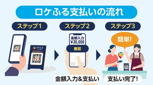 (3) 対象店舗で会計時に「ロケふるで支払います」と伝え、QRを読み取り金額を入力して決済完了