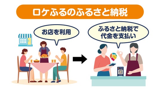 与論町を訪れた方が、市内での飲食・買い物・体験等サービスのお支払いの際に「ロケふる」アプリを利用することで、ふるさと納税として寄付をおこない、その場で返礼品(商品・体験・サービス)を即時に受け取ることができる仕組み 。