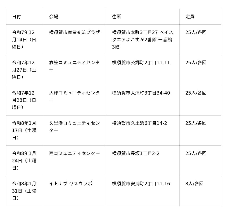 - 対象: 横須賀市内在住または在学の小学4年生~高校3年生