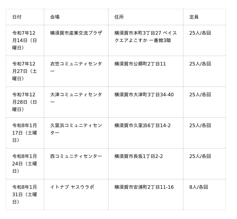 - 対象: 横須賀市内在住または在学の小学4年生~高校3年生