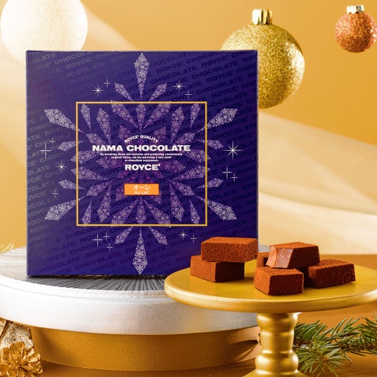 ロイズの生チョコレートの代表作[オーレ]を繊細で美しい雪の結晶を描いた限定パッケージに入れました。ミルクチョコレートに北海道の生クリームと風味付けの洋酒をブレンドした、まろやかでやさしい味わいです。