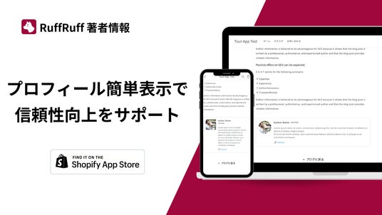 「RuffRuff 著者情報」は、ブログ記事や商品ページにプロフィール情報を簡単に掲載できるShopifyアプリです。