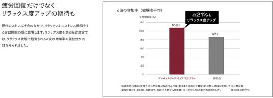 リラックス度を測る脳波測定では、リラックス状態で観測されるα波の増加率の優位性が約21%見られました。