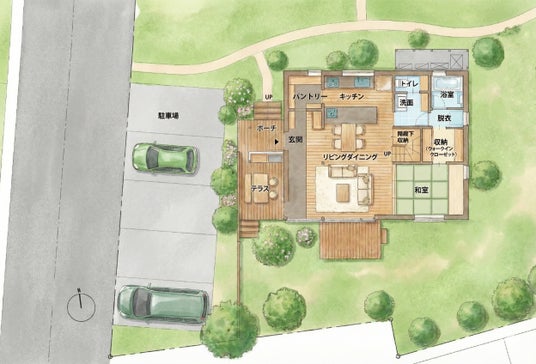 断熱等級7の超高性能な躯体とパッシブデザインにより、エアコン1台で年中快適な室温を維持。自然素材と計画された換気計画により、どの部屋も冬暖かく、夏涼しい住宅、何より空気が良く健康的に暮らせる住宅となっています。また、太陽光発電+蓄電池を標準装備し、オフグリッドでも住めるレベルのエネルギー自給率の高い暮らしを提供します。